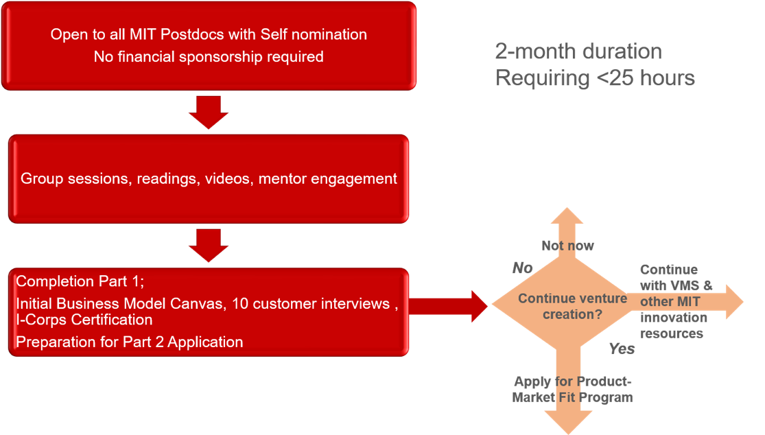 Essentials is a 2‑month short program providing introduction to the research-derived innovation process. It is a group learning experience based on the NSF I‑Corps curriculum delivered by certified instructors in partnership with MIT VMS. Essentials is open to all Postdocs via self-nomination. Space may be limited. No day-a-week time commitment or financial sponsorship is required for this part of TFP.